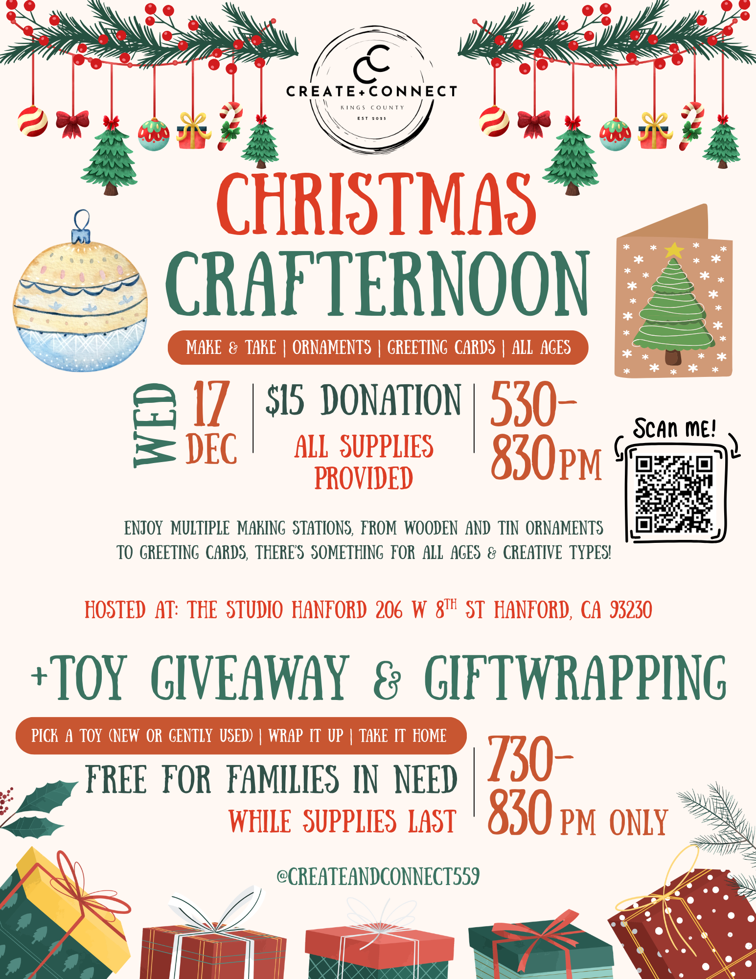 💸 $15 per person* (Toy Giveaway & Giftwrapping is FREE) *If you’d like to donate a new toy to families in need you can come to the crafting workshop for free.